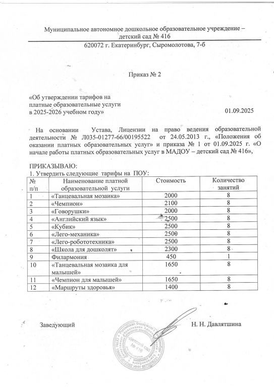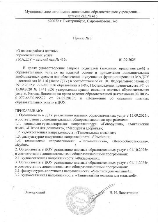 В МАДОУ- детском саду № 416 в 2025-2026 учебном году реализуются следующие платные образовательные услуги: